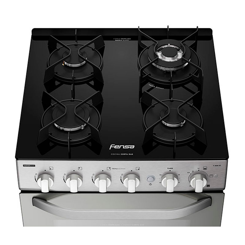 Tu innovadora Cocina 4 platos Experience de Fensa F 3000 RT vas a sorprender a cualquiera que la vea. Su diseño moderno posee una cubierta de vidrio templado que aporta elegancia. Su quemador triple llama que cocina con mayor rapidez y potencia hace que esta sea tu cocina ideal para tu hogar.