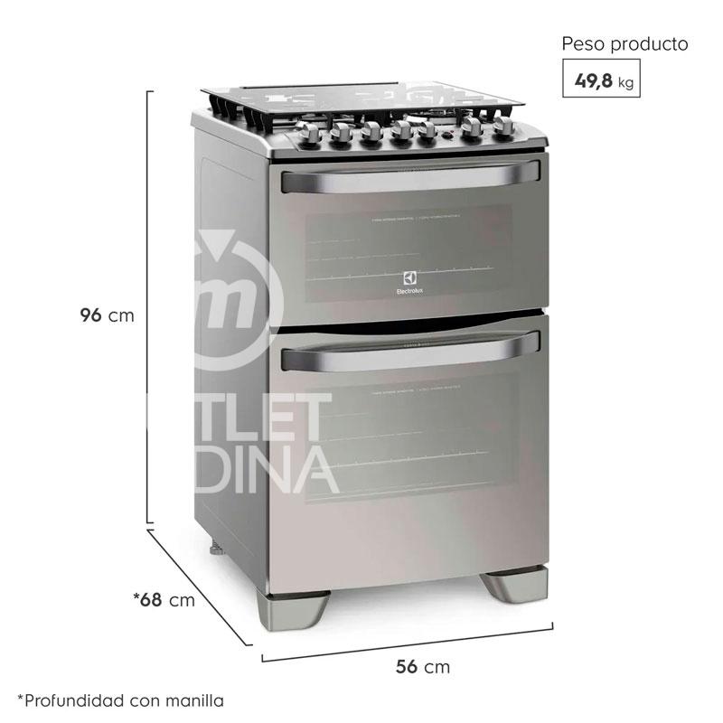 COCINA A GAS ELECTROLUX 56DXA 4 PLATOS GRILL DOBLE HORNO GRIS