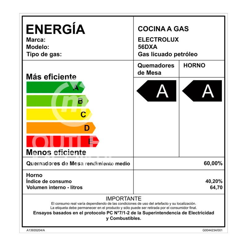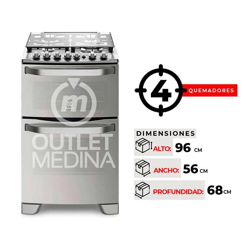 COCINA A GAS ELECTROLUX 56DXA 4 PLATOS GRILL DOBLE HORNO GRIS