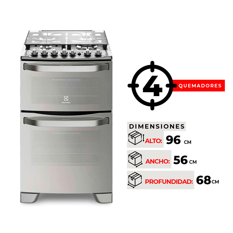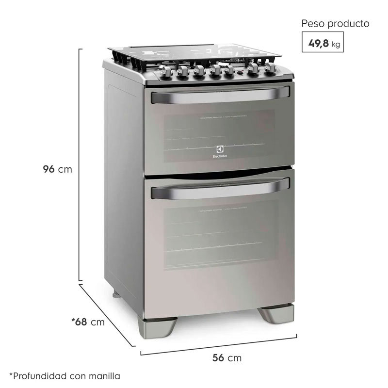 COCINA A GAS ELECTROLUX 56DXA 4 PLATOS GRILL DOBLE HORNO GRIS