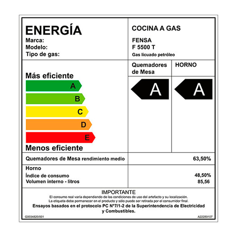 Tipo de Gas: Licuado