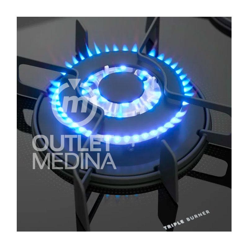 Features especiales: VaporBake, cubierta de vidrio templado y quemadores abatibles