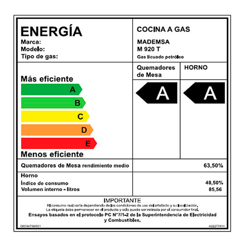 COCINA MADEMSA 5 PLATOS 920 T