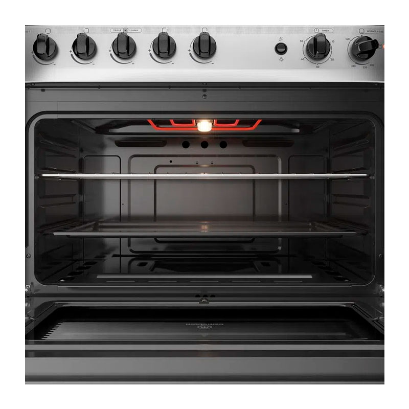 Cocina Mademsa M920 T de 5 quemadores. Una apuesta pulcra que elevará la eficiencia en tus preparaciones. Este modelo posee quemador triple llama para que puedas conseguir mayor rapidez en tus creaciones.