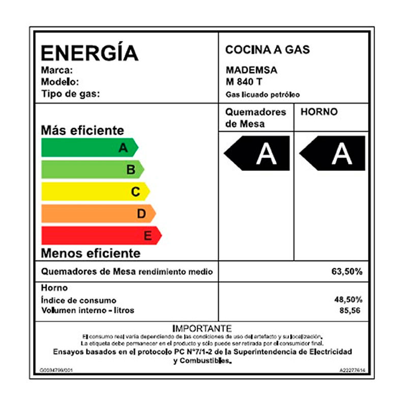 Tipo de quemadores: Aux (0,88 kW). | 3 SR (1,70 kW). | 2 RAP (2,70 kW).