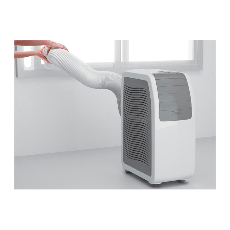 Aire acondicionado portátil de Electrolux, un producto compacto y de alta capacidad de refrigeración de ambientes, ideal para hacer frente al calor del verano. Cuenta con panel táctil práctico y moderno, 3 niveles de ventilación, función deshumidificadora y función oscilante para una agradable sensación de brisa.