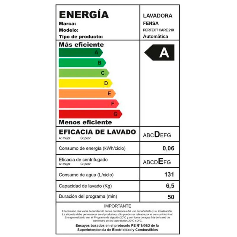 Consumo de Energía (kWh/ciclo): 0,06