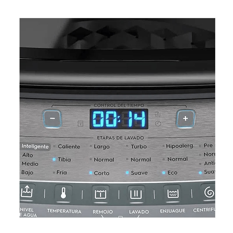 Funciones: Remojo ( Largo, Normal, Corto). Lavado ( Turbo, Normal, Suave). Enjuague ( Hipoalergénico, Normal, Eco). Centrifugado ( Pre Secado, Normal, Antiarrugas, Suave)