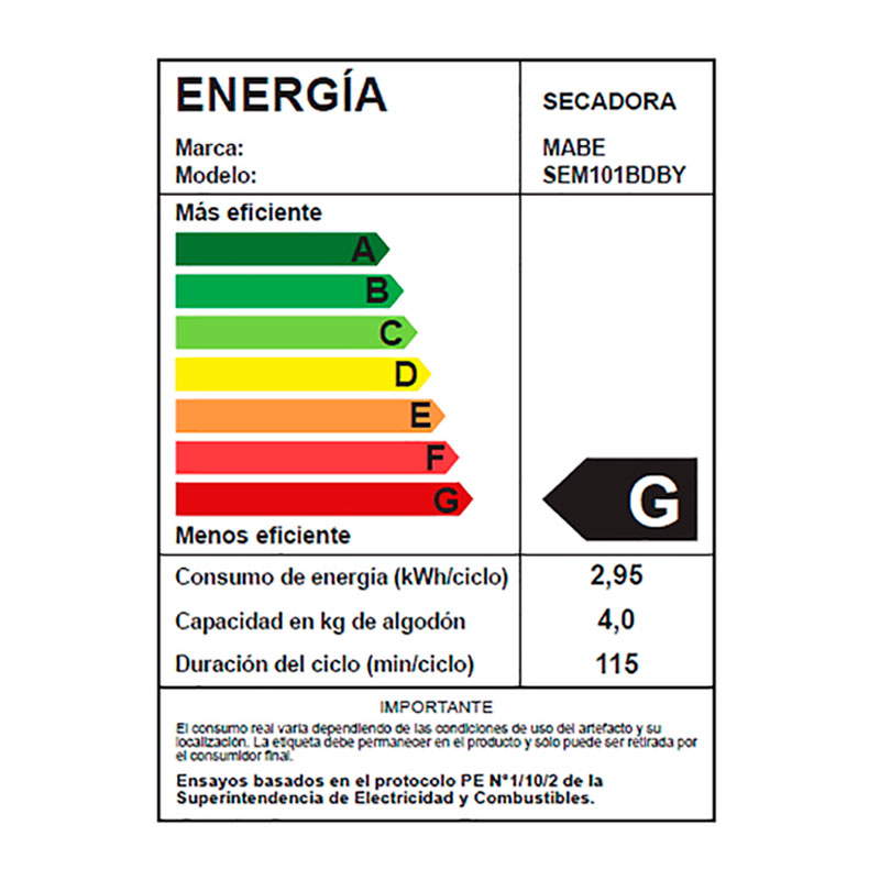 Secadora MABE SEM101BDBY con 10 kg de capacidad para dejar tu ropa en óptimas condiciones después de cada lavado. Este modelo tiene un programa especial que seca con aire frío al final de cada proceso para reducir el efecto de arrugas en tu ropa. Además de utilizar Giros Reversibles, para evitar que la ropa se enrede para hacer más efectivo el secado de tus prendas. Su doble filtro atrapa pelusas de fácil acceso se encuentra al frente de la puerta..