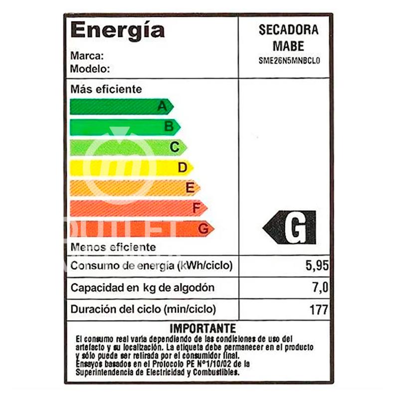Secadora Eléctrica Frontal 20Kg Blanca Mabe SME26N5MNBCL0