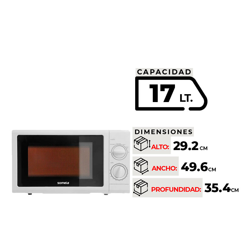 En Somela podrás encontrar microondas de diversas características, capacidades, niveles de potencia, funciones pre-programadas dependiendo del tipo de alimento a cocinar, con control análogo o digital y timer.