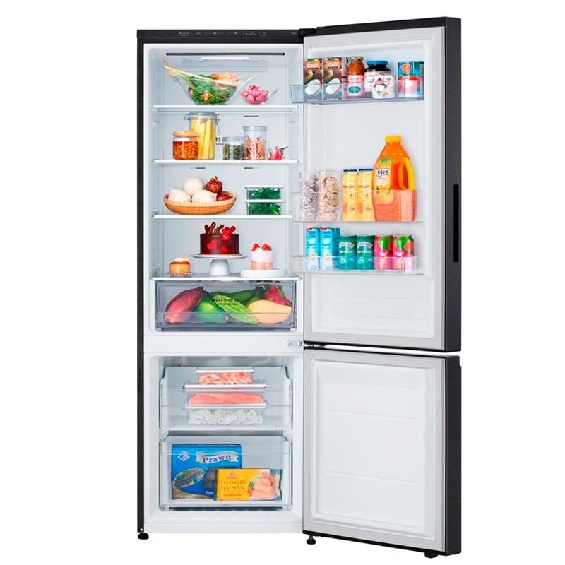 Este refrigerador LG Bottom Freezer combina elegancia, eficiencia y tecnología No Frost para que te olvides del descongelamiento manual. Con 87 litros de congelador y 248 litros de refrigeración, ofrece el espacio perfecto para cuidar tus alimentos con amor y mantener todo siempre fresco. Ideal para quienes valoran el orden, la frescura y el diseño inteligente.