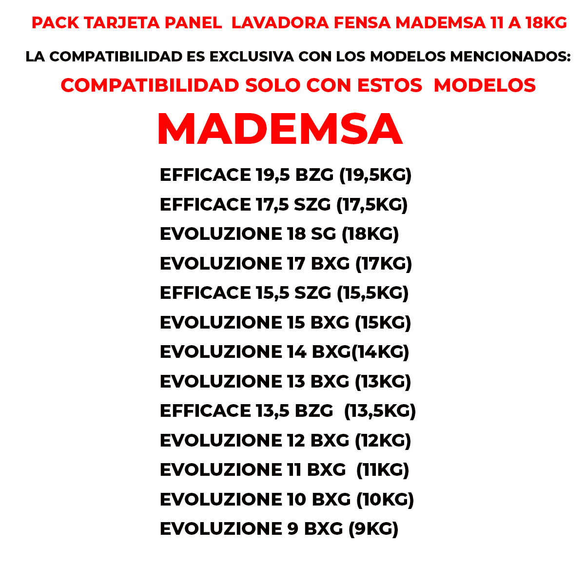 PACK TARJETA PANEL LAVADORA FENSA MADEMSA 11 A 18KG