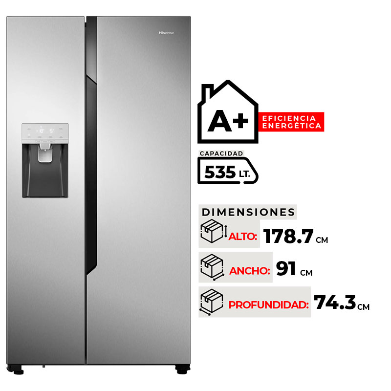 REFRIGERADOR SIDE BY SIDE HISENSE RC-70WS 535L NO FROST ACERO