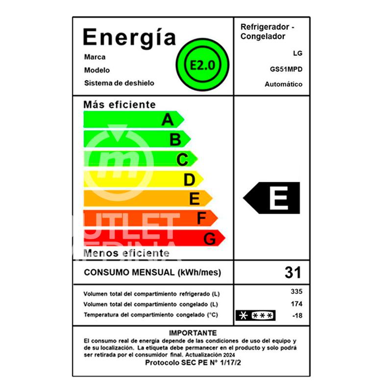 REFRIGERADOR NO FROST SIDE BY SIDE LG GS51MPP 509LTS