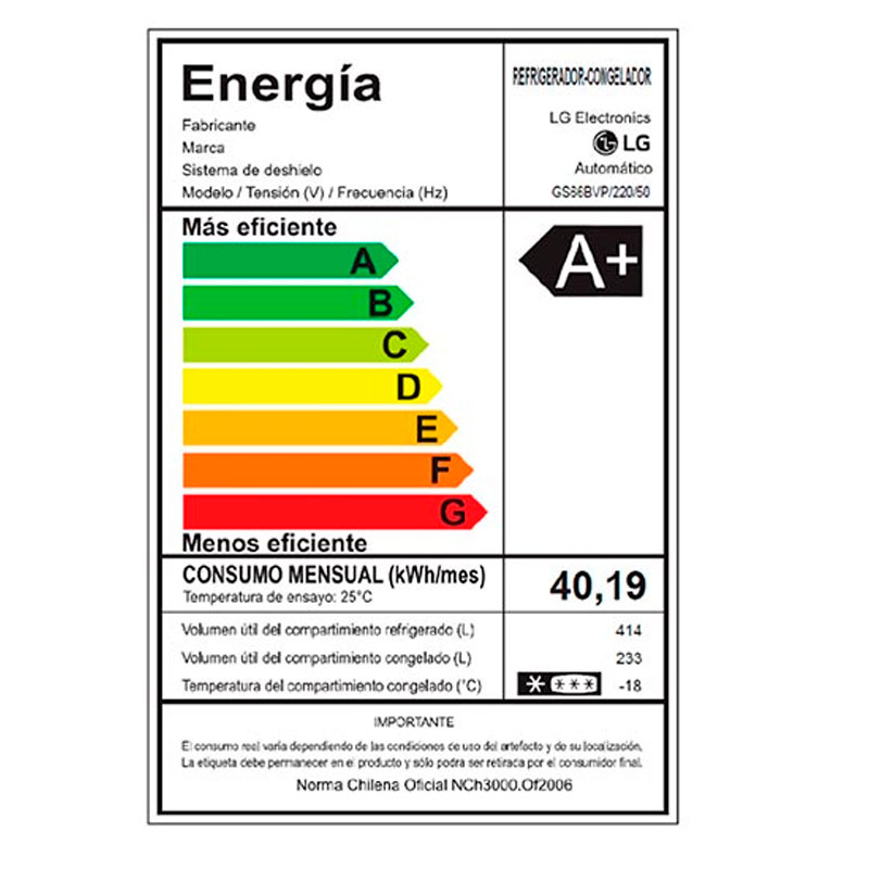 REFRIGERADOR SIDE BY SIDE LG GS66BVP NO FROST 647 LT