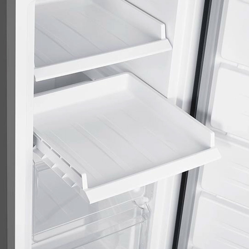 ¿Cuándo elegir un freezer vertical? Si buscas un equipo que ofrezca fácil acceso a tus alimentos y que, al mismo tiempo, se integre perfectamente en el diseño de tu cocina o área de almacenamiento, un freezer vertical es la mejor elección. Este tipo de freezer es especialmente útil cuando prefieres una organización tipo estante, donde todo está a la vista y es más sencillo de alcanzar. ¿Por qué el modelo LFV-290NFI? Este modelo combina eficiencia en el uso del espacio con un diseño elegante en acero inoxidable que añade un toque de modernidad a cualquier entorno. El modelo LFV-290NFI no solo se preocupa por la organización interior, sino también por tu comodidad y el cuidado del medio ambiente. La distribución interna está diseñada para maximizar el espacio disponible, con 4 cajoneras termoplásticas